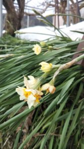 水仙のつぼみも膨らみました。和水仙はいい香りですね。