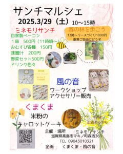 2025.3/29(土) 10~15時 場所は、ミネモリサンチです。