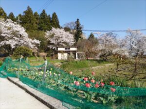 桜の下の花畑でも、チューリップやビオラ、ネモフィラなどが次々と咲き出しました。