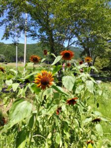 暑い日射しのなか、太陽に向かって綺麗に咲いているひまわり。
